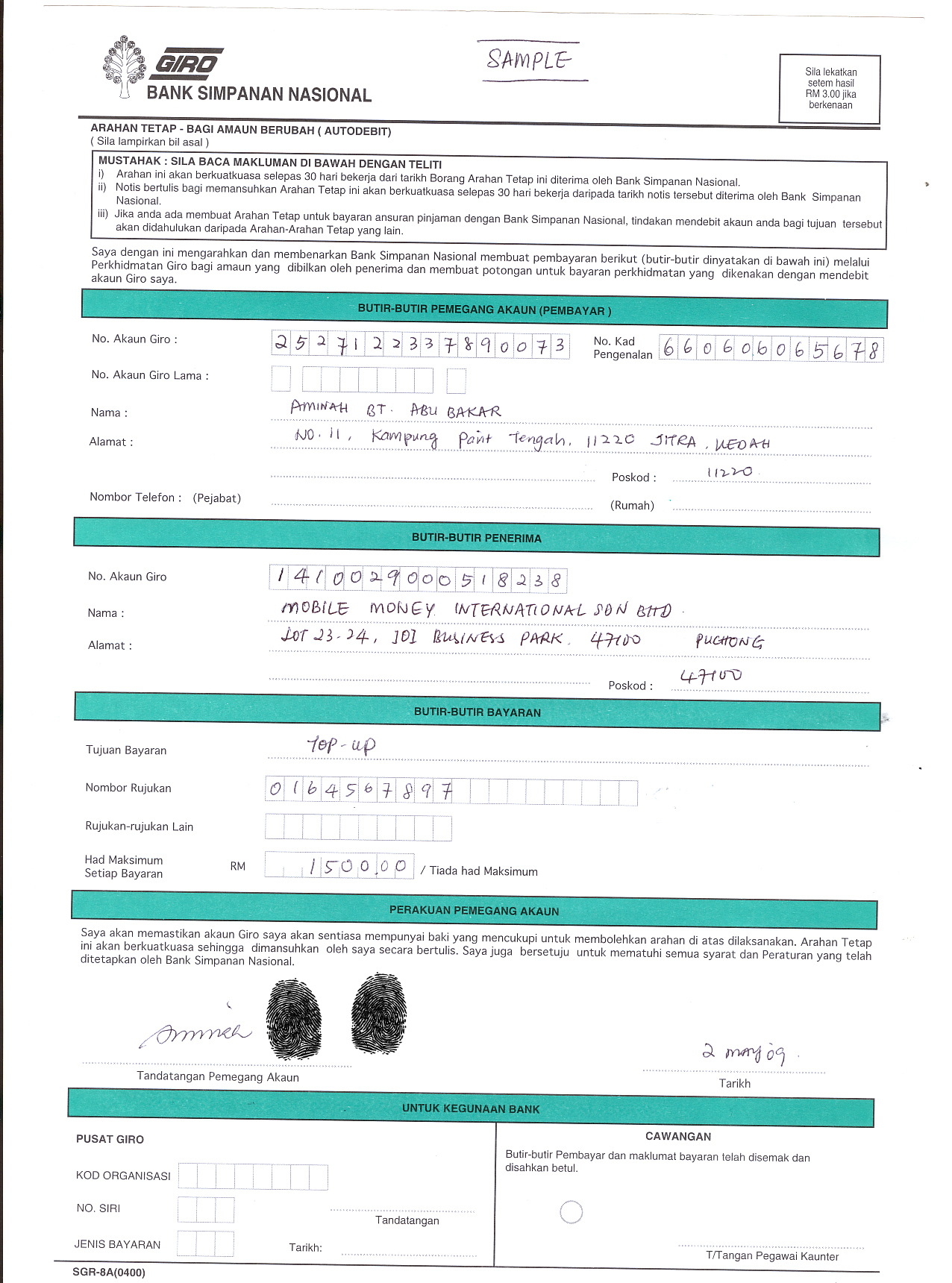 BSN GIRO Form: Sample